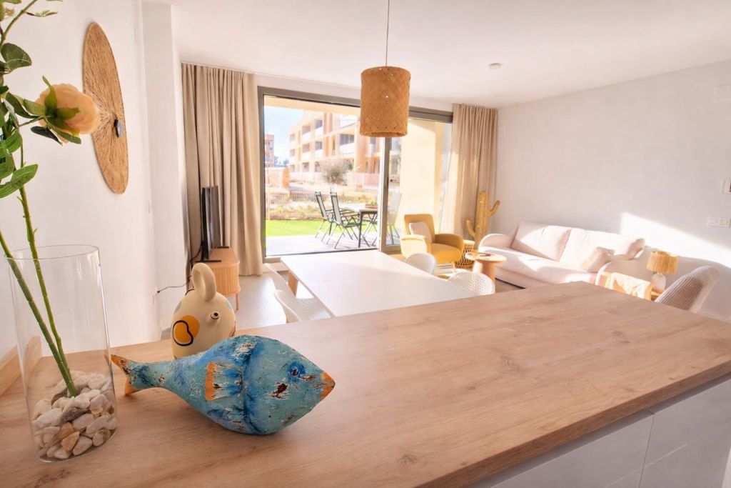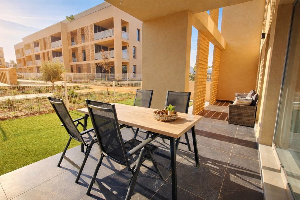 De moderne, volledig ingerichte appartementen liggen in een prachtig mini-resort met onder andere een zwembad, padelbaan, speeltuin, zonneterras en meer. Boodschappen doen is eenvoudig met Lidl en Consum om de hoek. Ontmoet andere gasten in de gezellige social club — de voormalige boerderij — of begin je dag in de fitnessruimte.